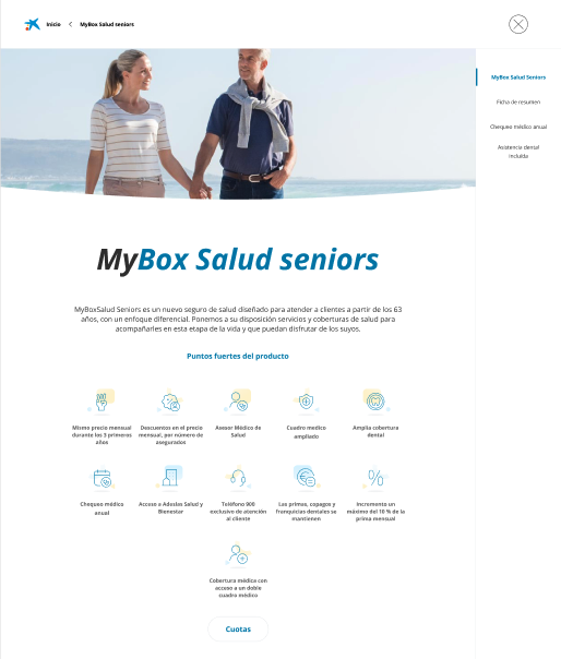 Caixabank's sales department had a problem because it did not have a direct sales interface with its customers. It only had contracts and documents in PDF format, which were not interactive. This was solved by designing an intuitive and more organized interface where the manager can interact with the customer and also view their private information by switching between tabs, facilitating contracts with users.